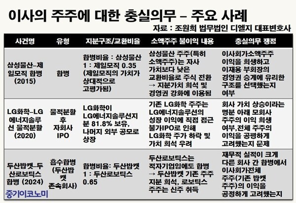 문제는 회사와 주주의 이익, 혹은 주주 간 이해가 충돌하는 상황이다. 그는 삼성물산과 제일모직 합병, LG화학의 물적분할과 LG에너지솔루션 사례, 두산로보틱스 합병 논란 등을 언급하며 “앞으로 거의 모든 합병과 분할에서 ‘대주주에게 유리하고 소액주주에게 불리한 것 아니냐’는 질문이 반복될 것”이라고 내다봤다.